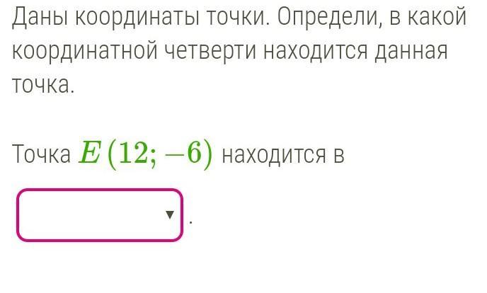 Координата Х у точки положительная, значит находится либо в 1, либо в 4 четверти. Так как координата Y отрицательная, то находится в 4 четверти
