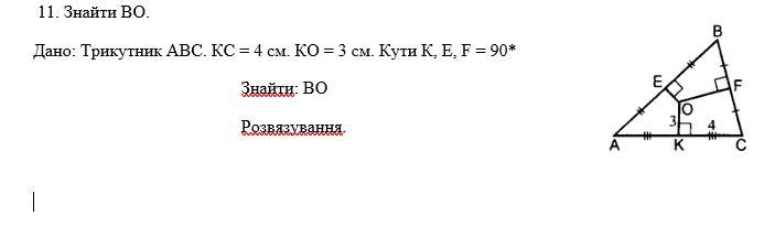 Проведем отрезок OC, тогда треугольник KOC прямоугольный с углом K=90. Этот треугольник египетский т.к. в нем катеты равны 3 и 4 => гипотенуза OC=5 => BO=5