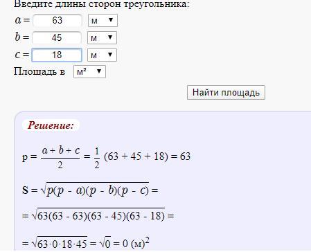 Т.к. наименьшая сторона второго треугольника равна 18см, то она же будет подобна стороне первого треугольника, равной 2см, а коэффициент подобие будет равен 18/2=9.Найдем все остальные стороны второго треугольника, домножив две другие стороны первого треугольника (равные 5-ти и 7-ми см) на коэффициент подобия : получим 45 и 63см соответственно. Найдем площадь второго треугольника по формуле Герона