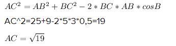 Сторони трикутника АВС: АВ =3 см, ВС=8см, кут В= 60°. Знайти третю сторону трикутника.