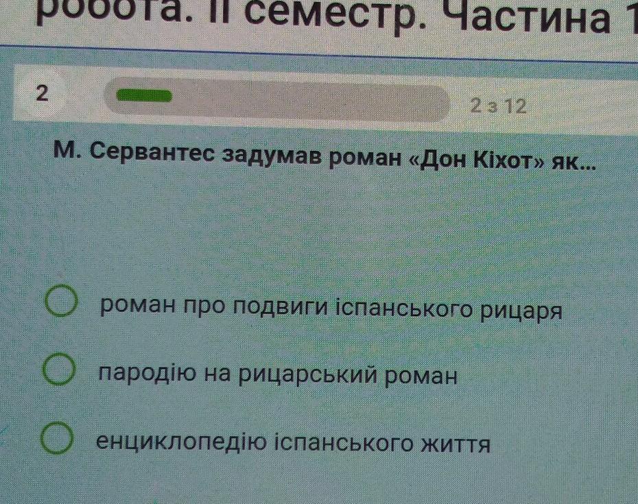 Ответ: роман про подвиги іспанського рицаря
