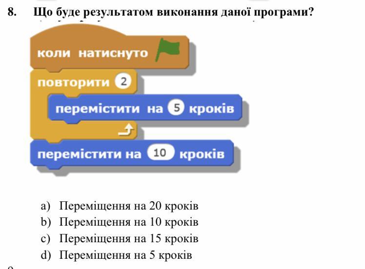 Перемістити на 5 кроків, виконуємо двічі. Отже 10+10=20.