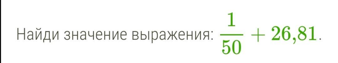 Объяснение: 1/50 можно записать как 2/100, то есть 0,02. Следовательно, 0,02+26,81=26,83