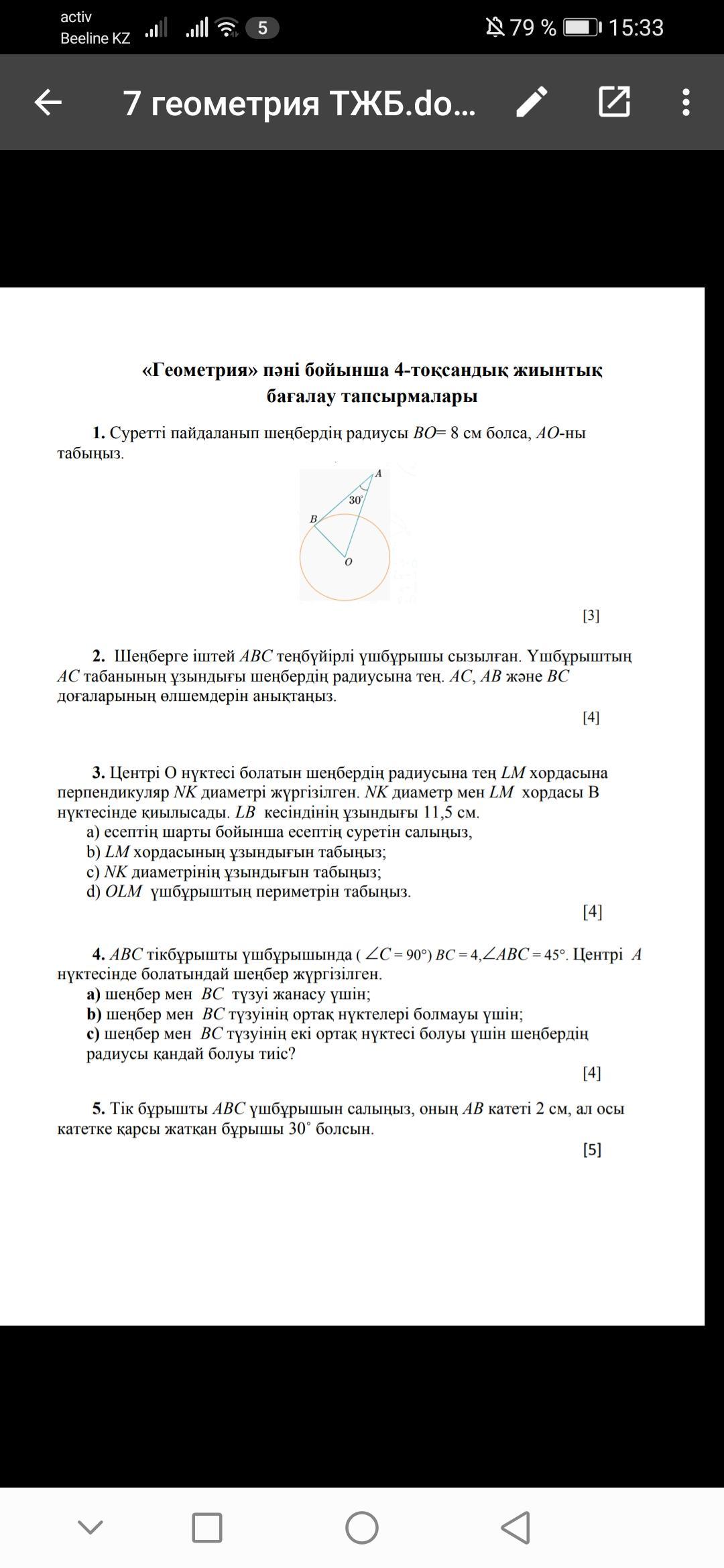 ШЕШУІ:∆KOL-TIKБҰРЫШТЫ OK-РАДИУС ∠KOL=60°∠KLO=90÷60=30°OK=6,OL=6×2-12
