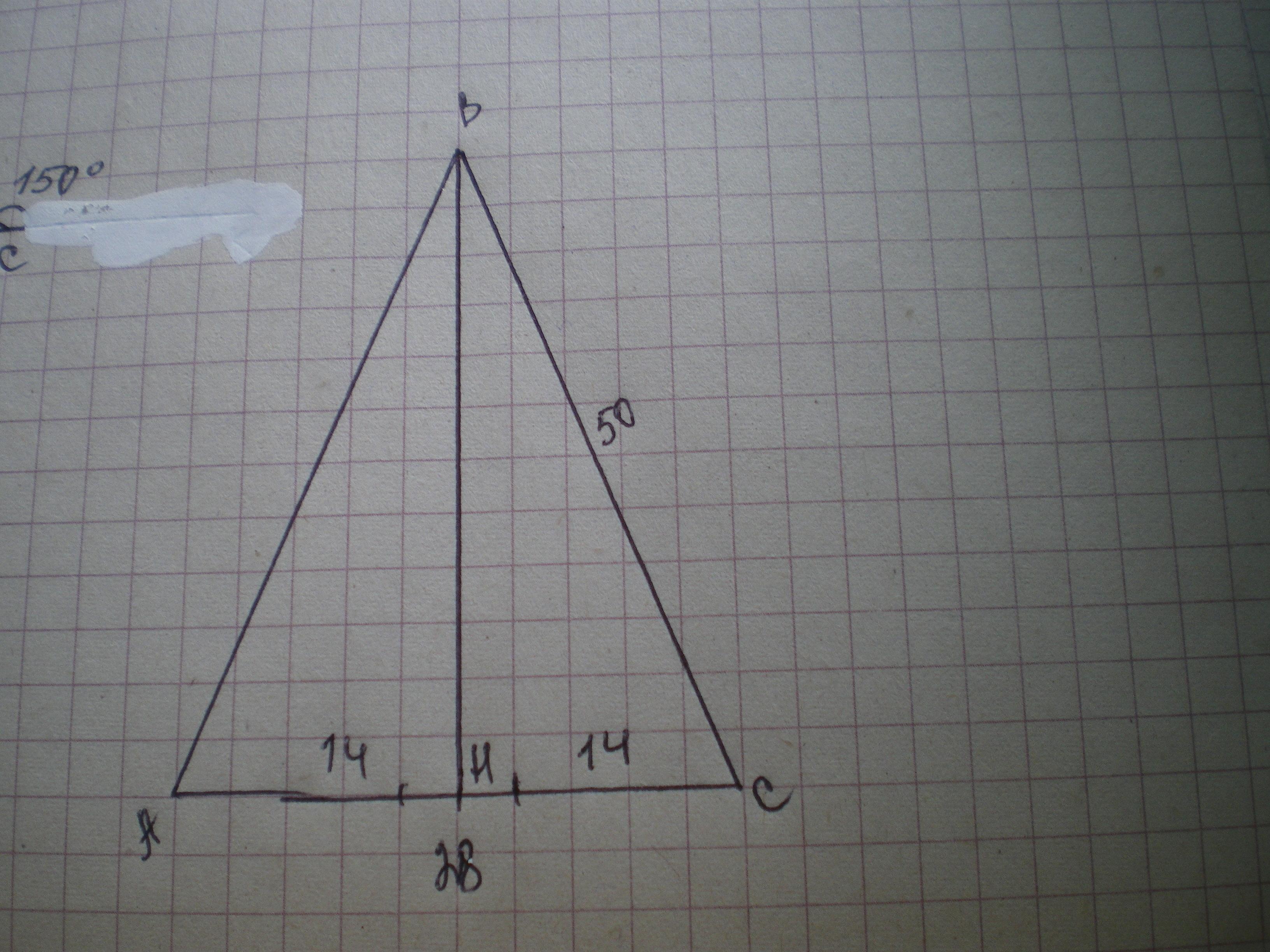 Бічна сторона рівнобедреного трикутника дорівнює 50 см, а його основа- 28 см. Знайти довжину висоти, яка проведена до основи.