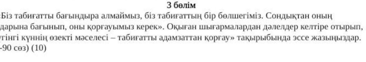 Табиғат – адамзат өмір сүріп жатқан орта, ортақ үй, ортақ мекен. Адам мен табиғат – егіз ұғым. «Ағаш жапырағымен, жер топырағымен көрікті» дейді халқымыз. Табиғат көркейіп, желегі жасыл тартса, адамның да тынысы кеңейіп, көңілі көтерілері анық.