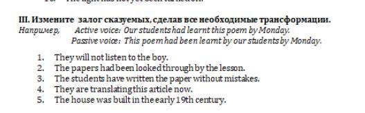 III. Измените залог сказуемых, сделав все необходимые трансформации.