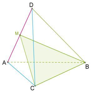 В тетраэдре DABC точка M делит пополам ребро AD.