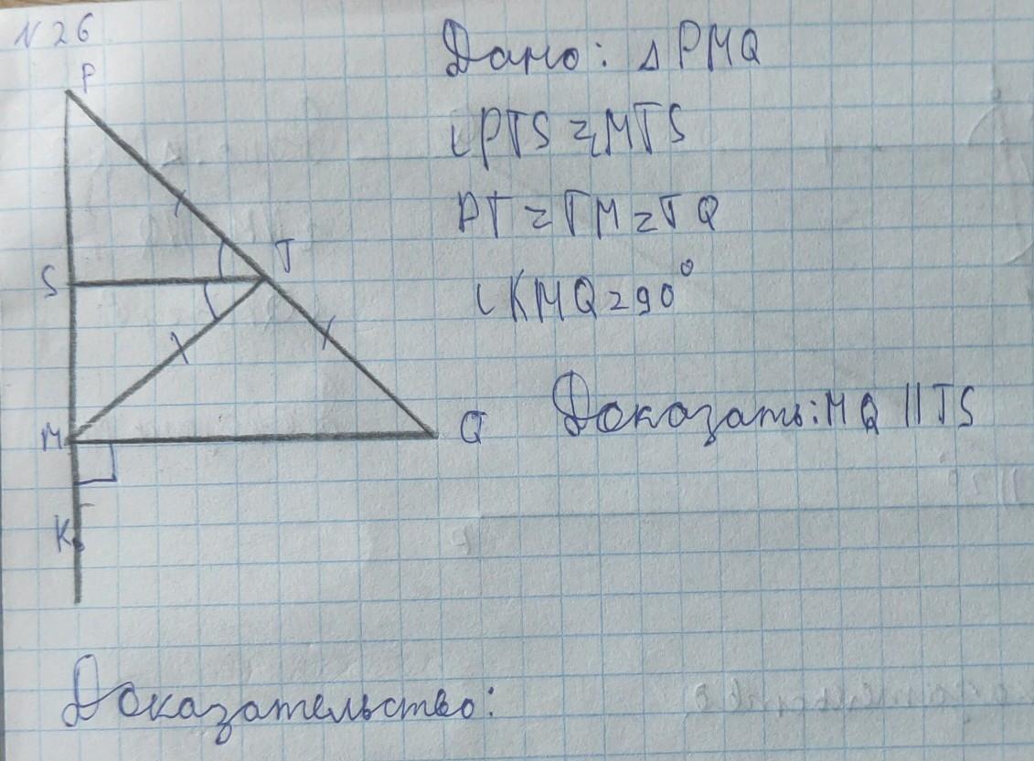треугольник SPT=треугольнику STM , т.к. PT=MT, <STM=<STP, и имеют одну общую сторону, по признаку средней линии треугольника ST//MQ