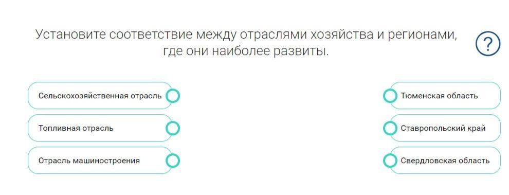 Установите соответствие между отраслями хозяйства и регионами, где они наиболее развиты.