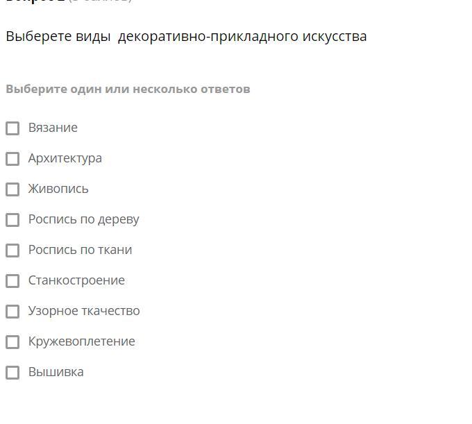 роспись по дереву; Вышивка; Узорное ткачество; Кружевоплетение; Керамика; Вязание.