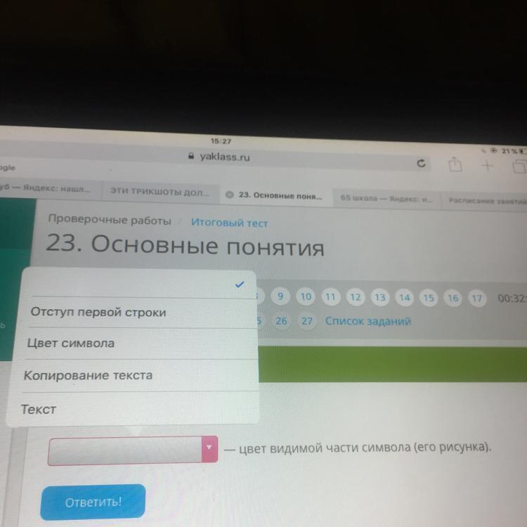 Ответ: Цвет символа