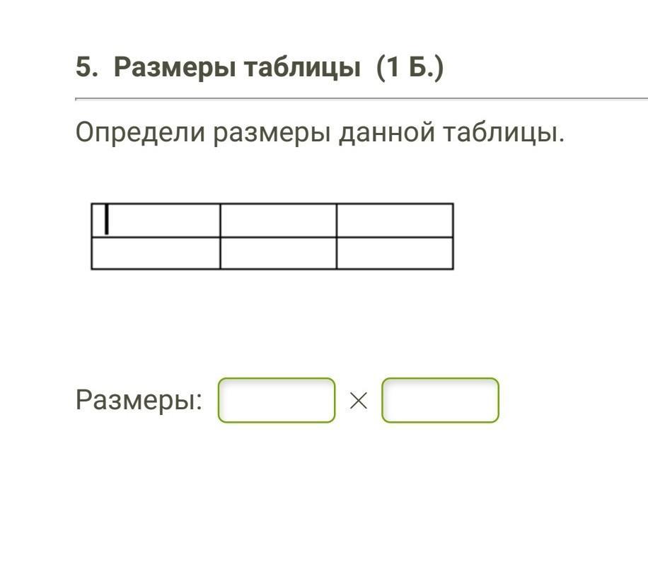 Размер данной таблицы 3x2