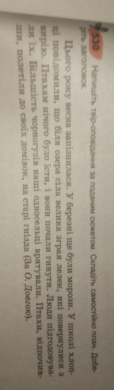 Сьогодні був дуже холодній весняний день.Ми з олегом пішли до озира на рибалку.Ми завжди туди ходимо по вихідним.І ось коли ми вже підйшли до озера ми побачили лелек які дивилися у воду і намагалися вспіймати бодай маленьку жабку.Ми так розчулилися що ледь не розплакалися алеми втримали свої почутя як справжні козаки.Ми вирішил попросити допомоги в нашої школи щоб це був як конкур.Наприклад нагодуй лелеку або лелечин друг.Але в школі нас з цією ідеєю навіть до директора не впустили.Сказал що замалі ми йще щось подібне пропонувати.