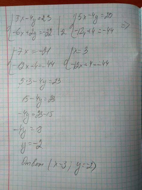 (5x−4y)+2(−6x+2y)=23+2⋅(−22)