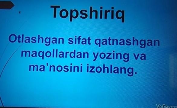 Izoh: Otlashgan sifat aslida qanday so'rog'iga javob bo'ladigan so'zning gap ichida kim yoki nima so'rog'iga javob bo'lishidir.
