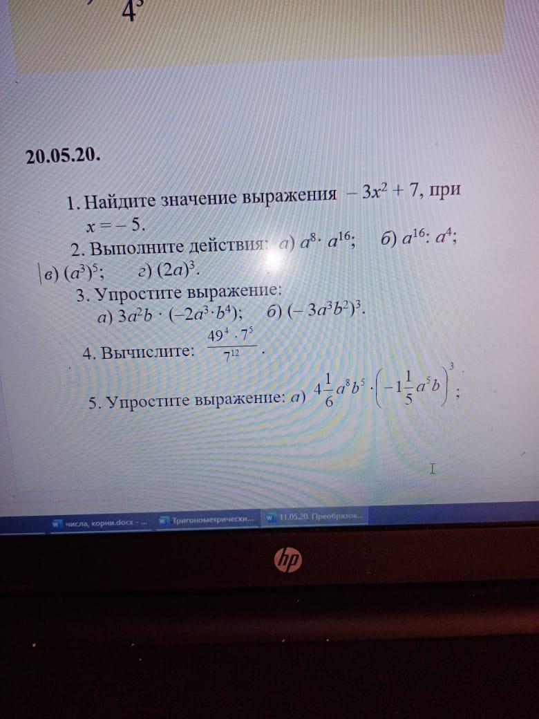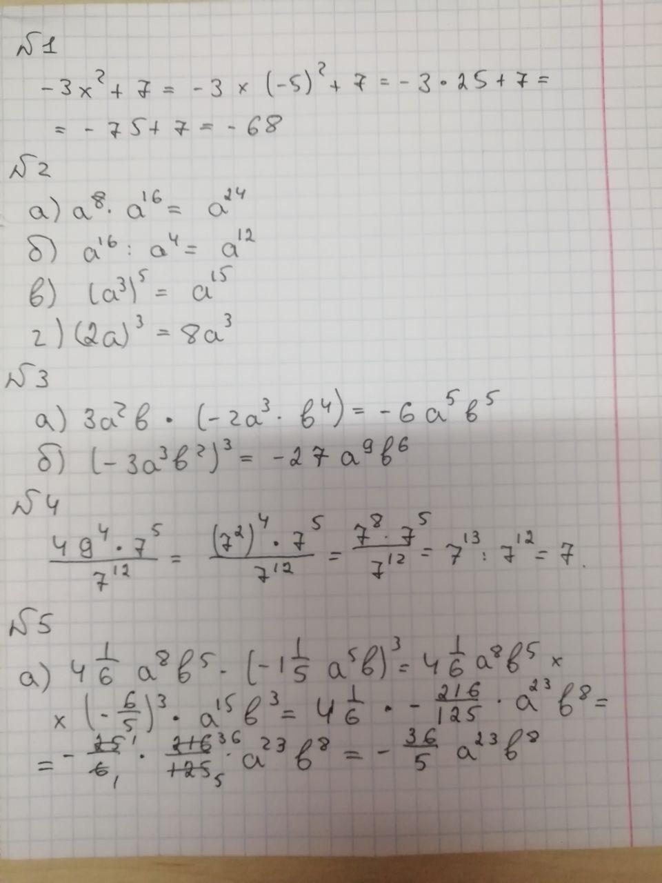 1. -3* 5^2 + 7= -3*25+7=-75+7=-68