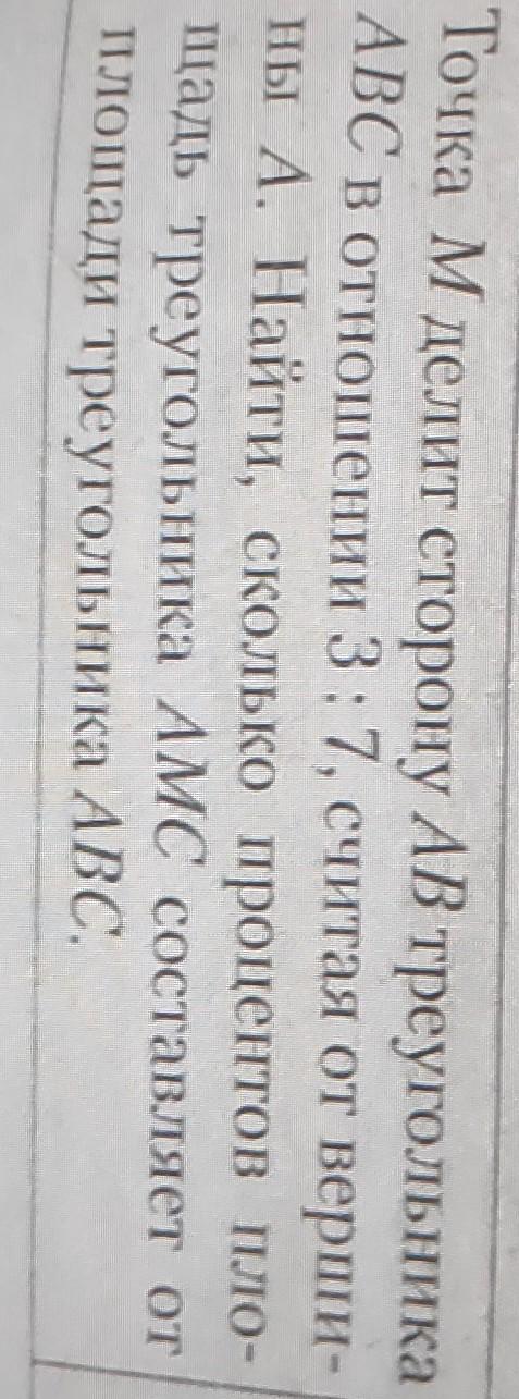 получается отношение площадей тругольников: (Samc)/(Sabc)=3/10 это в долях