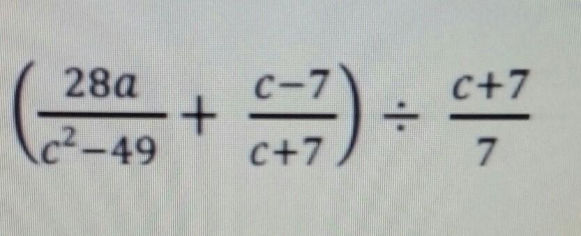 (28a/(c-7)(c+7) + c-7/(c+7))*7/(c+7)= (28a+c²-14c+49)/(c-7)(c+7) * 7/(c+7)= 7(28a+c²-14c+49)/(c-7)(c+7)²