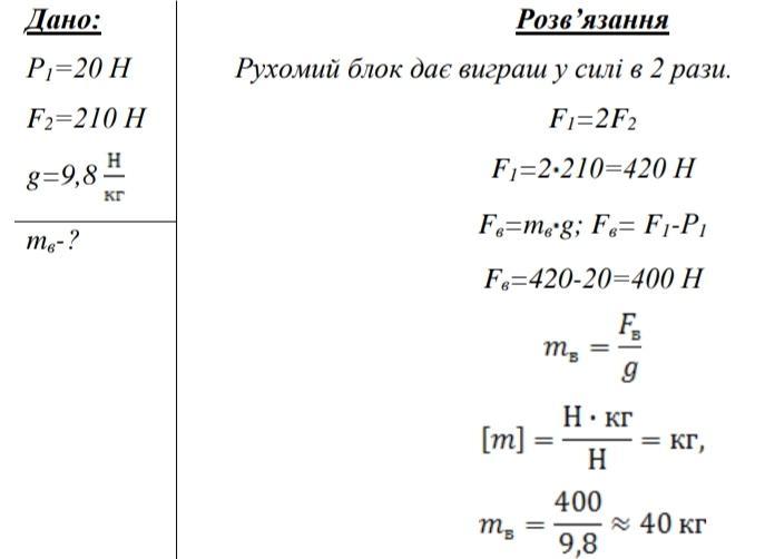 прикладаючи до вільного кінця мотузки зусилля 210 Н, якщо вага блоку 20 Н?