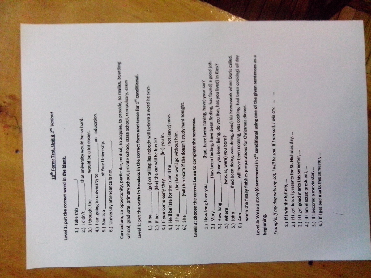 opportunity 2 realize 3 exam 4 acquire 5 graduate 6 compulsory
