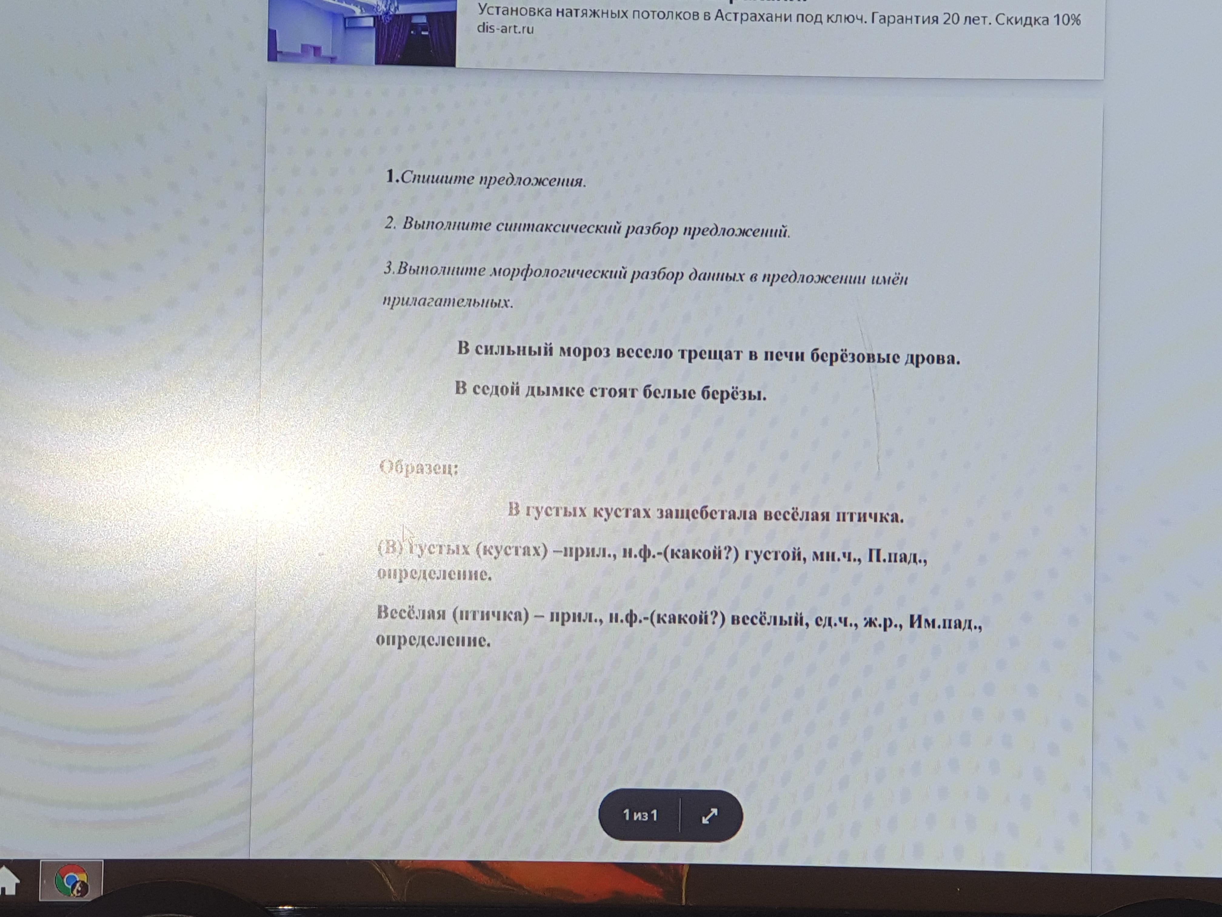 1. В сильный мороз весело трещат в печи берёзовые дрова.