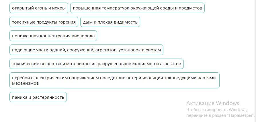 Ответ:Первичные:открытый огонь и искры; повышенная температура окружающей среды и предметов; токсичные продукты горения, дым; дым и плохая видимость; пониженная концентрация кислорода.Вторичные :падение зданий, выделение ядовитых веществ из механизмов и агрегатов, электрический ток и паника.