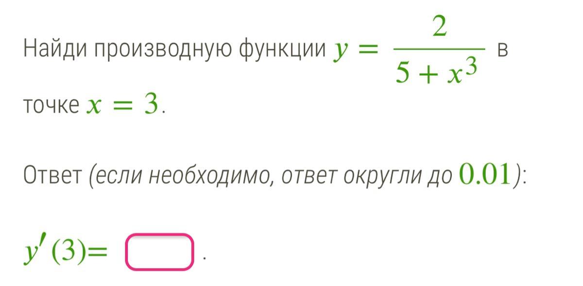 Найди производную функции =2/5+х^2 в точке =3.