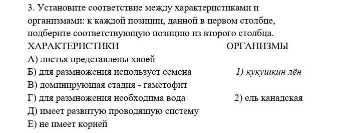 Установите соответствие между характеристиками и организмами: к каждой позиции, данной в первом столбце, подберите соответствующую позицию из второго столбца.