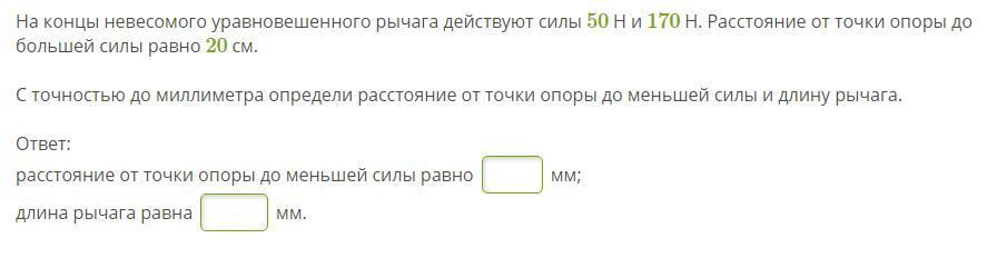 F1=50 H F2=170 H L2=200 мм L1=? L=?