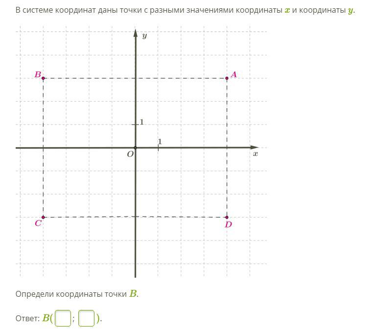 *буква точки* (отношение к нулю по OX; отношение к нулю по OY)