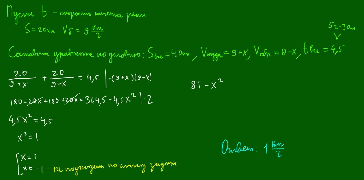 обратно, затратив полчаса на стоянку в В. Какова скорость течения реки (в км/ч)?