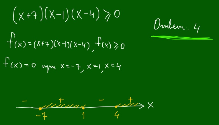 Найдите наименьшее целое число, в котором функция y = ( x + 7)( x -1)( x - 4)