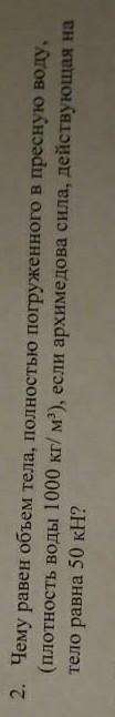 50000Н m=F/g V=5000кг : 1000кг/м3=5м3