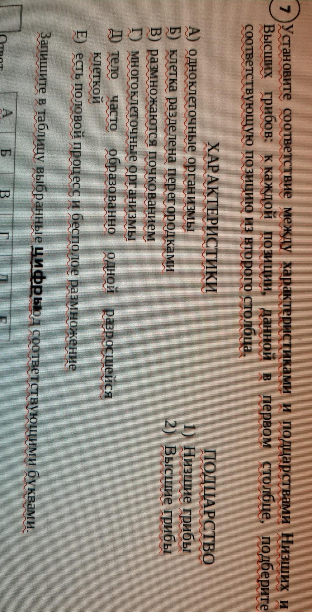 Высших грибов: к каждой позиции, данной в первом столбце, подберите