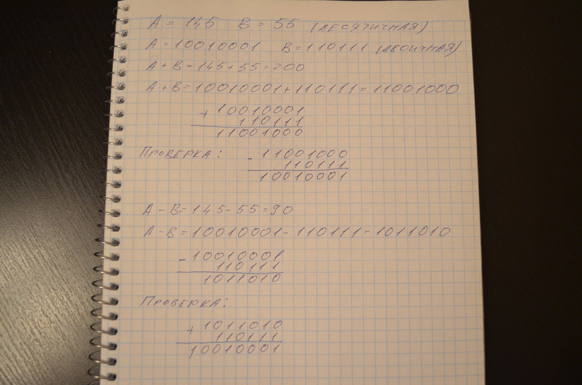 Даны два числа в десятичной форме системе счисления А=145, В=55. Перевести их в двоичную систему счисления, найи сумму (А+В), разность(А-В), произведение (А*В). Проверить результаты выполненных действий. ЕСЛИ МОЖНО ПО ПОДРОБНЕЙ ПОЖАЛУЙСТА, ПОТОМУ ЧТО НАДО БУДЕТ ПОКАЗАТЬ КАК ЭТА РАБОТА ВЫПОЛНЯЕТСЯ.