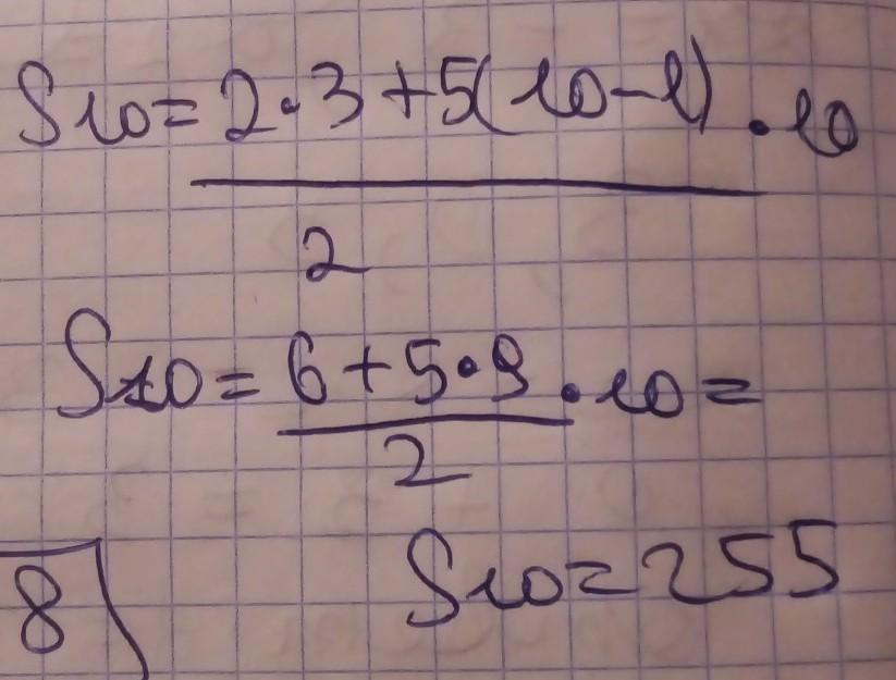 Вычисли сумму первых 10 членов арифметической прогрессии (an), если даны первые члены: 3;8...