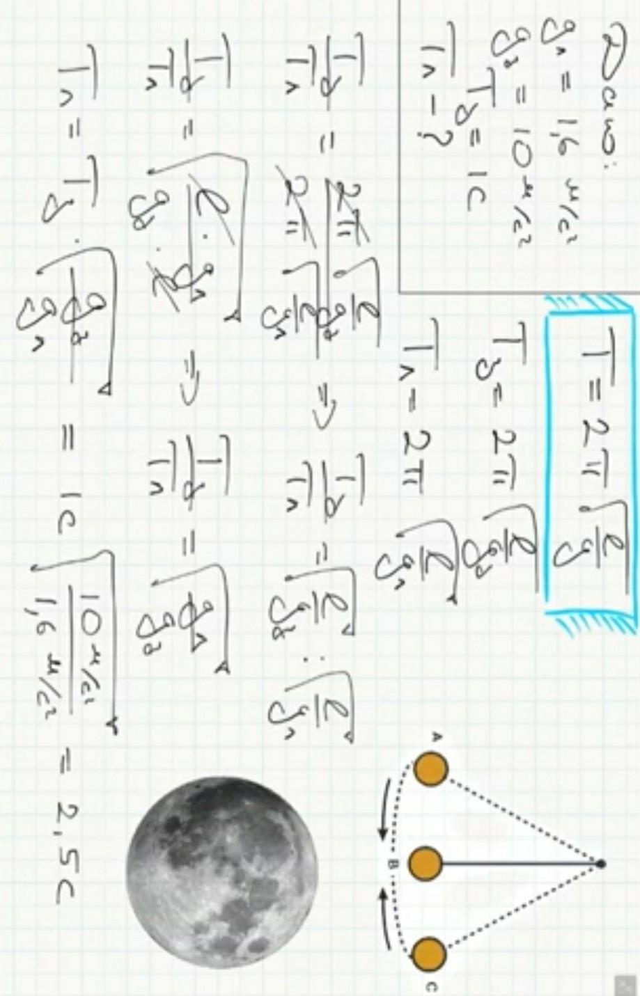 Ускорение свободного падения на Луне 1,6 м/с2. Каким будет период колебаний математического