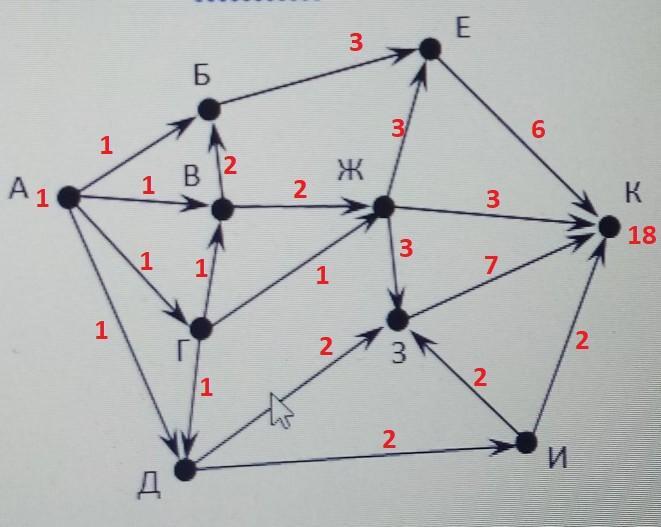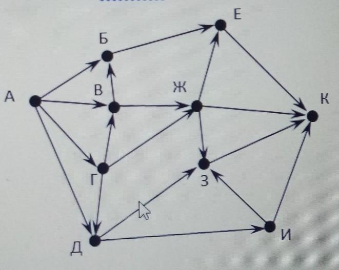 схема дорог, связывающих города А, Б, В, Г, Д, Е, Ж, З, И, К. По каждой дороге