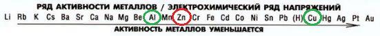 Т.е. на стенках будет образовываться медь. Это происходит, потому что медь стоит правее цинка в ряду активностей металлов, а значит, активнее.