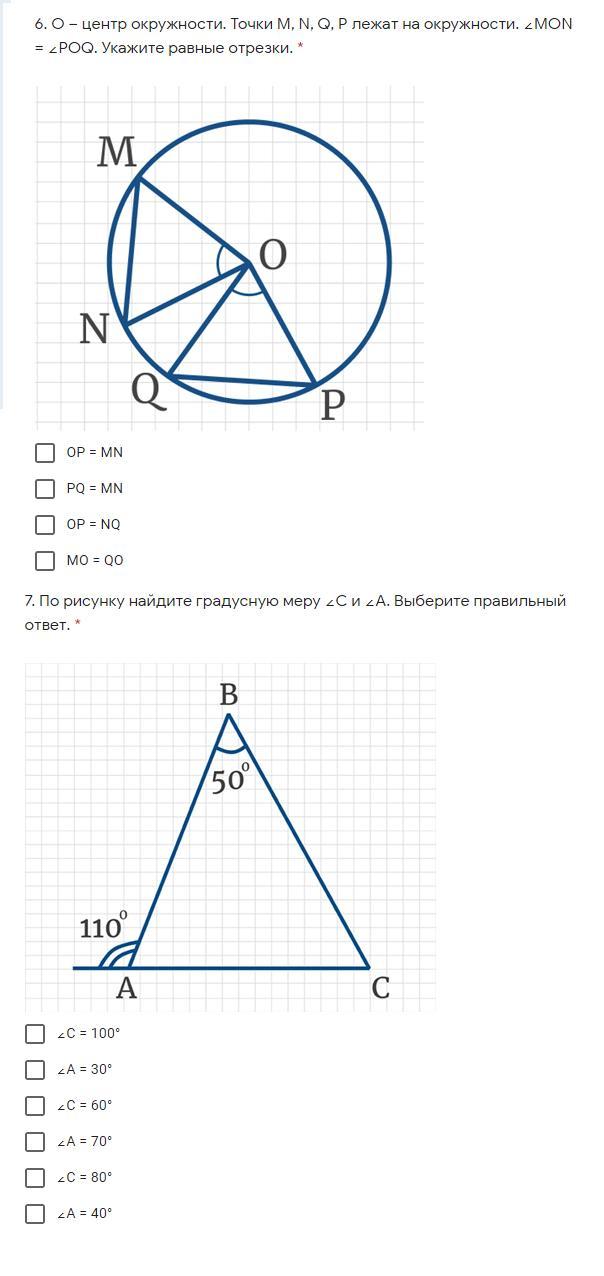 7. По рисунку найдите градусную меру ∠C и ∠A. Выберите правильный ответ. *