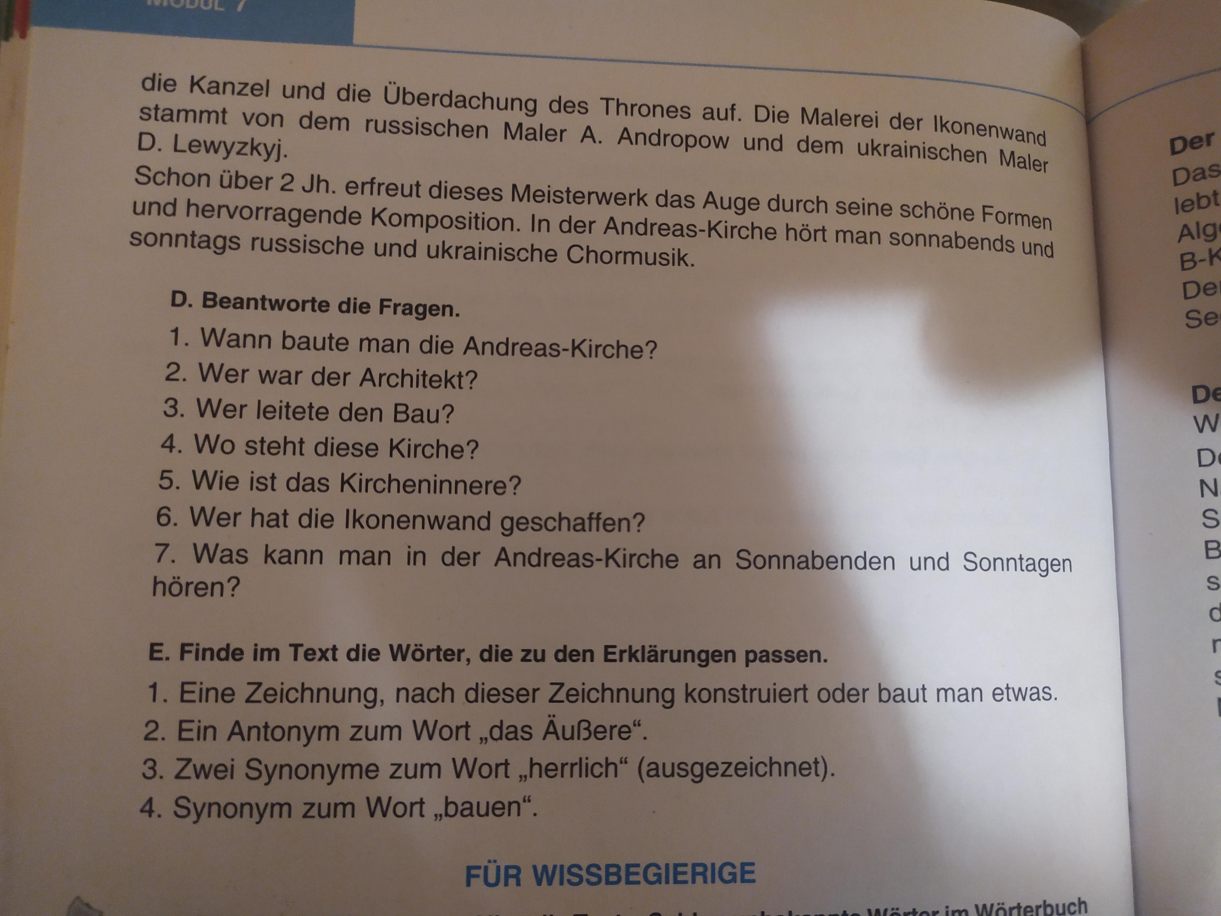 1. Die Andreas-Kirche wurde im Jahre 1744 gebaut.