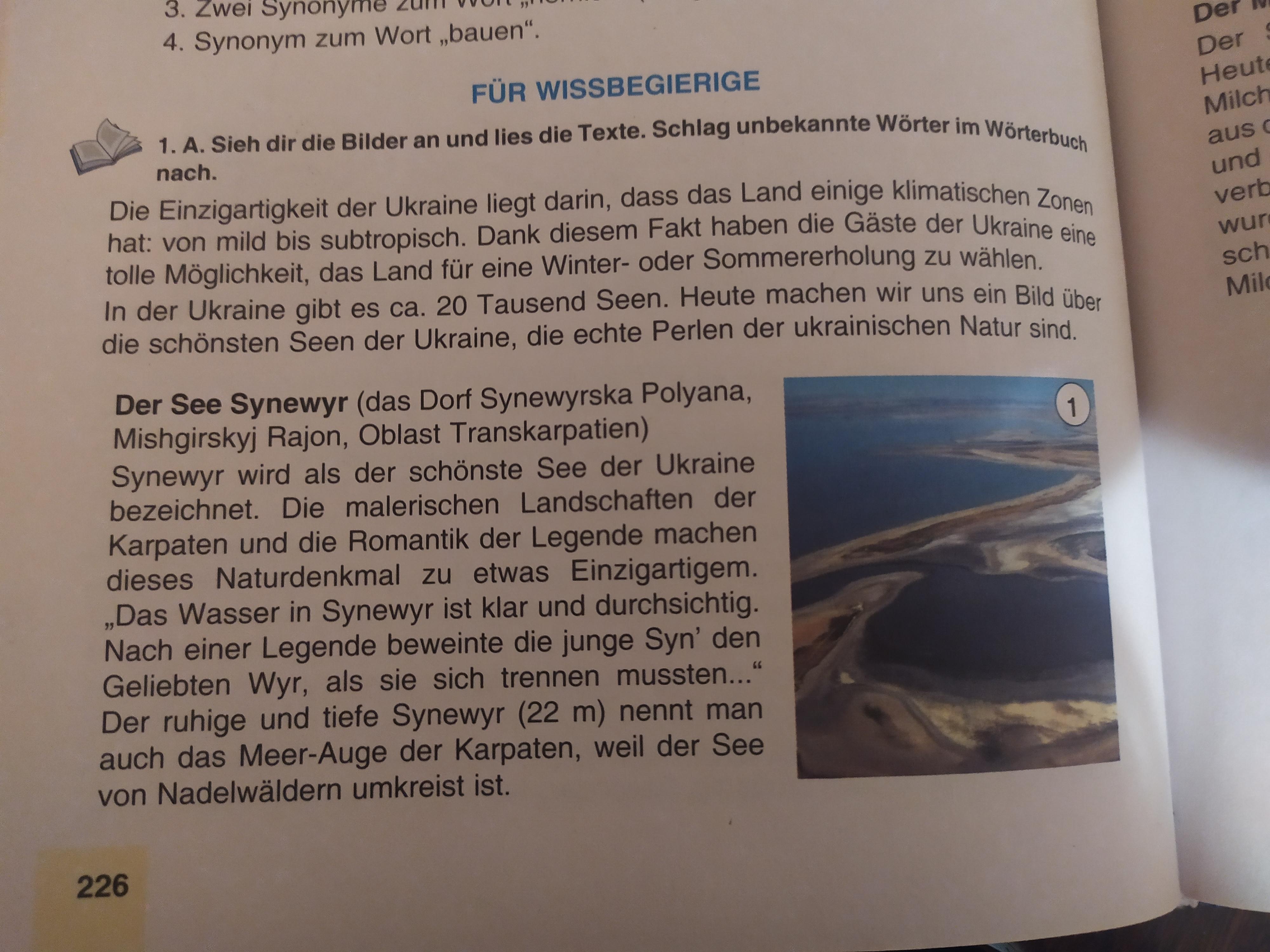 1. Ich habe erfahren, dass Synewyr als der schönste See der Ukraine bezeichnet wird.