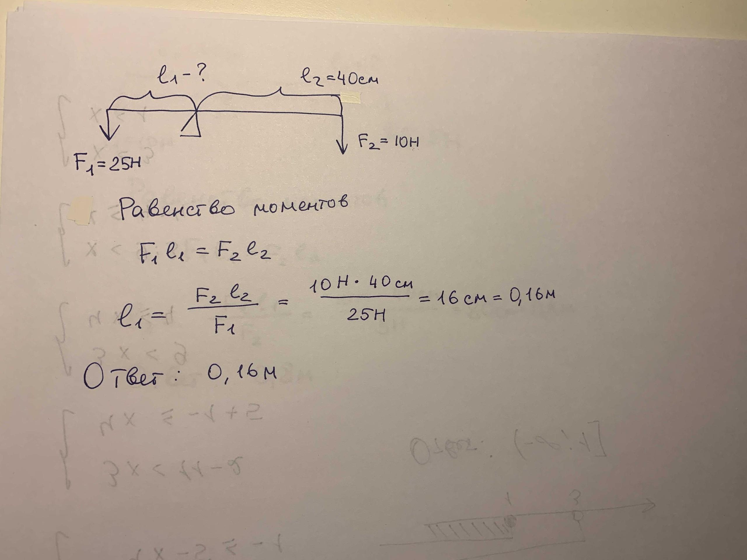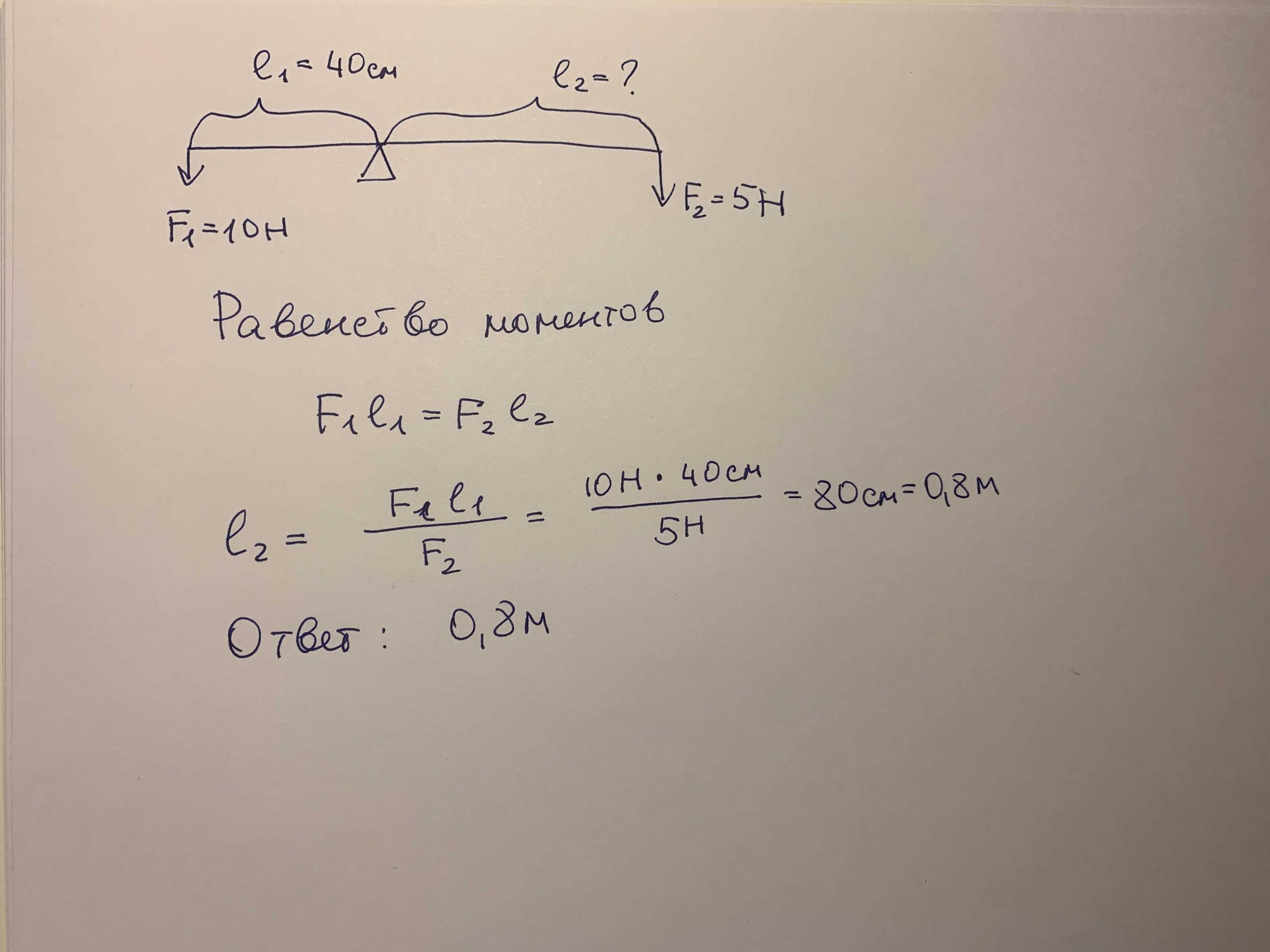 Во второй задаче длина рычага равна l1+l2=0,8+0,4=1,2м