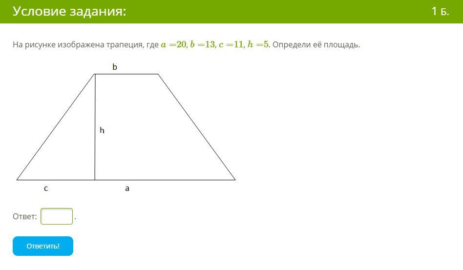 2) S=1/2h(a+b)=1/2×5(31+13)=2,5×44=110 см^2