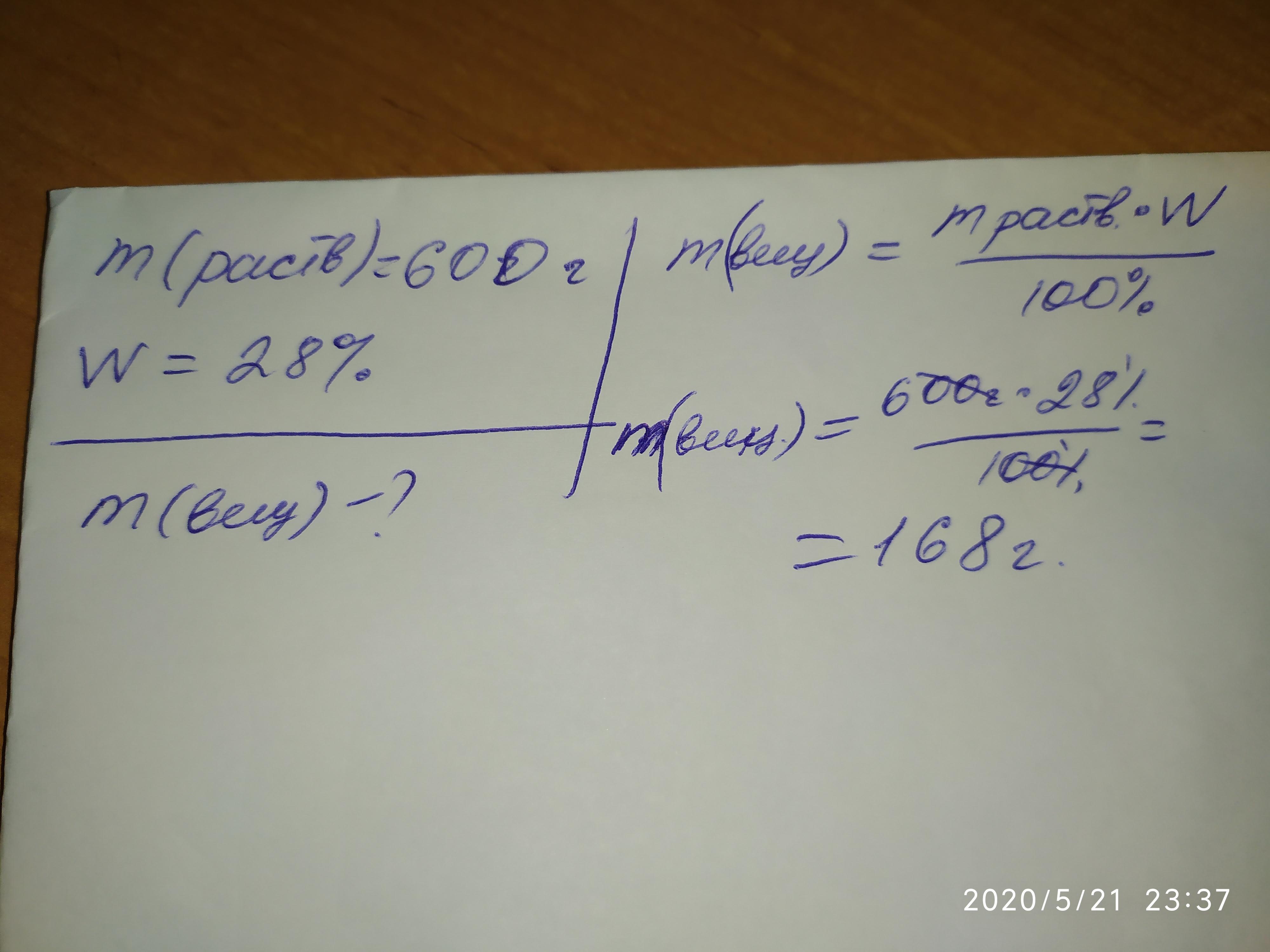 Найти массу сульфат калия в растворе массой 600 г и массовой долей ее 28%.