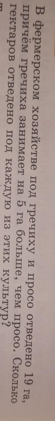( 19 - 5 ) : 2 = 7 (га) - занимает просо