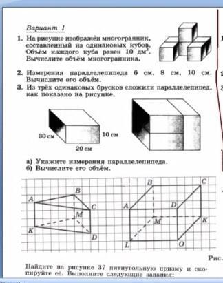 1). 6 кубов по 10 кубических дециметров составляют фигуру объёмом 6 * 10 кубических дециметров = 60 кубических дециметров