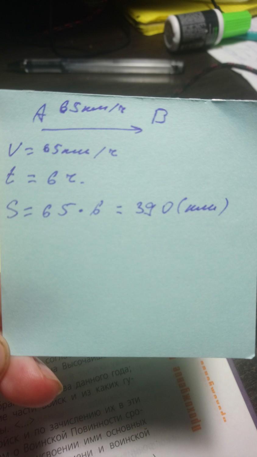 из одного города в другой вышел поезд который двигался со скоростью 65 км/ч каково расстояние между городами если он прибыл в пункт назначения через 6 часов.