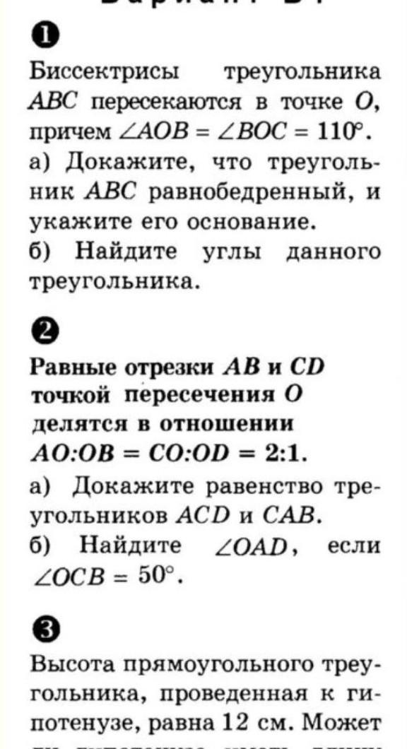 2) Из равных треугольников АОД и СОВ (АО=СО, ОD=ОВ, углы при вершине О вертикальные) имеем АD=СВ. А угол В= углу D. Тогда треугольник АСD равен треугольнику АВС по двум сторонам и углу между ними ( СD+АВ, СВ+АD - доказали, угол В= углу D - доказали).